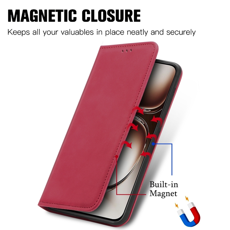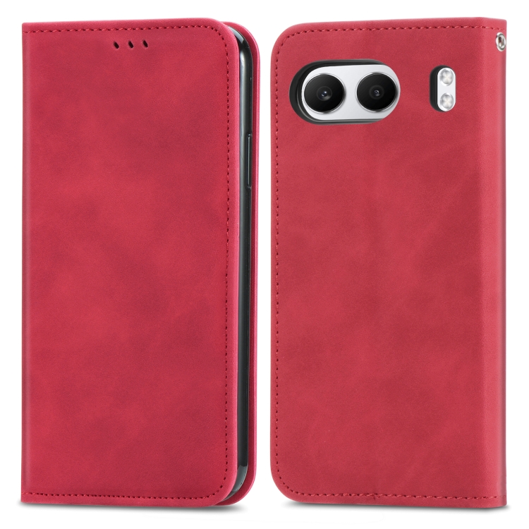 Funda de Cuero con Tapa Magnética y Tacto Retro para OnePlus Nord 4 (Rojo)