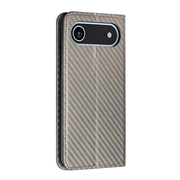 Funda de cuero con tapa magnética y textura de fibra de carbono para iPhone Air (gris)