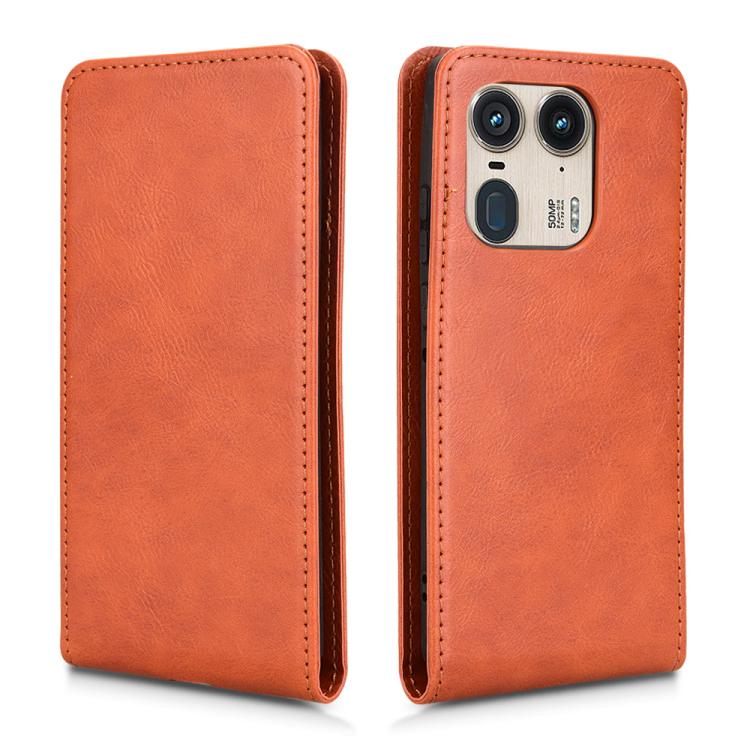 Funda de Cuero con Tapa Vertical Magnética para Motorola Edge 50 Ultra 5G (Marrón)