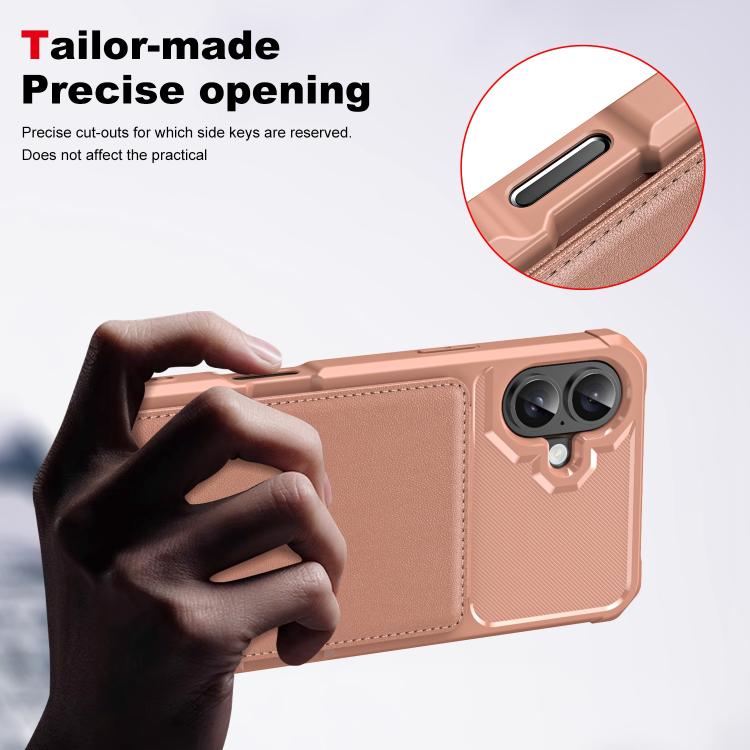 Funda de Cuero con Tapa Vertical para iPhone 16 con Tarjetero (Oro Rosa)