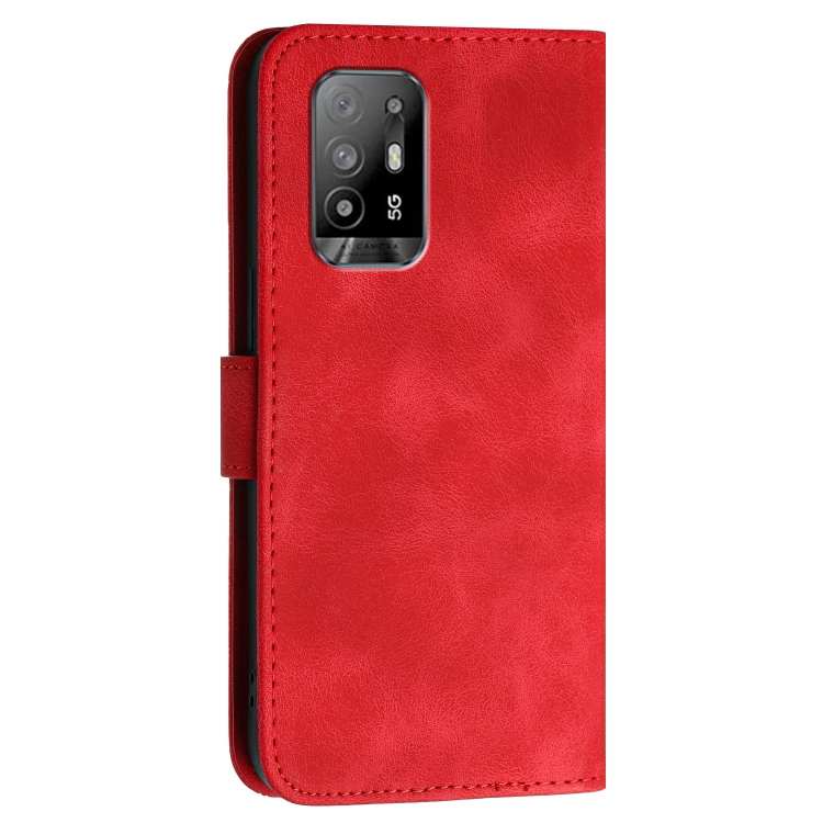 Funda de Cuero con Tapa y Cordón para Oppo Reno5 Lite Yx0080 con Diseño En Relieve de Mariposa y Cuadrícula (Rojo)