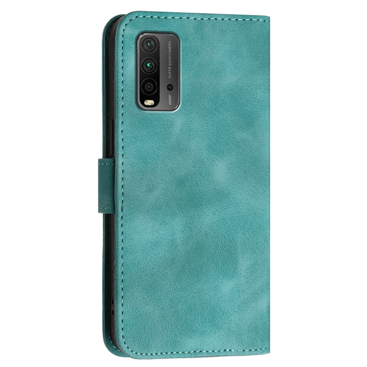 Funda de Cuero con Tapa y Cordón para Redmi 9T Yx0080 con Diseño En Relieve de Mariposa y Cuadrícula (Azul Claro)