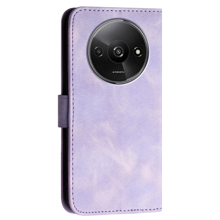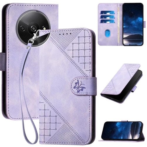 Funda de Cuero con Tapa y Cordón para Redmi A3 Yx0080 con Diseño En Relieve de Mariposa y Cuadrícula (Morado Claro)