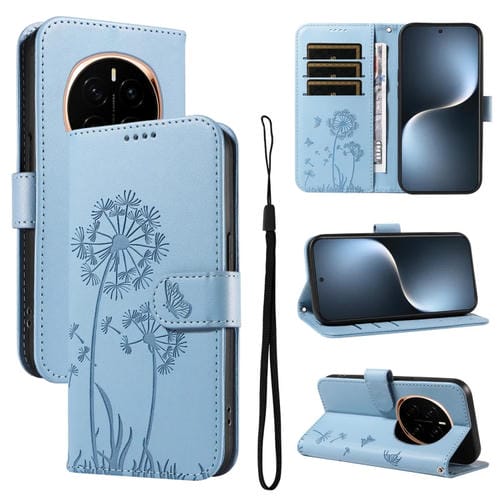 Funda de Cuero con Tapa y Estampado Diente de León para Honor Magic7 5G (Azul Cielo)