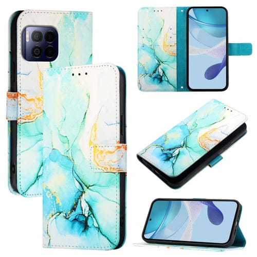 Funda de Cuero con Tapa para T-Mobile Revvl 7 Pro 5G Pt003 (Verde) con Diseño de Mármol