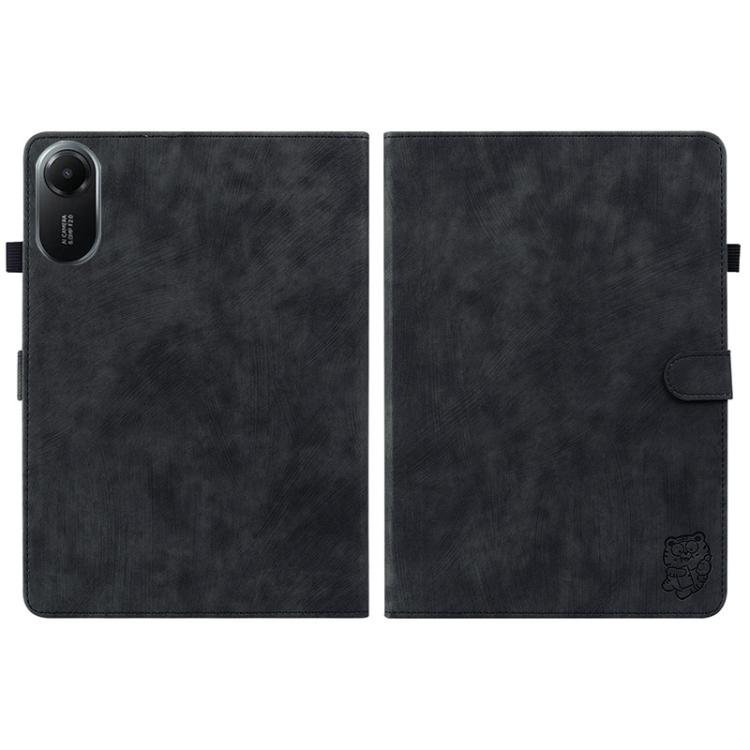Funda de cuero con tapa y diseño de tigre para Redmi Pad 2 / Redmi Pad SE 11 2025 (negra)