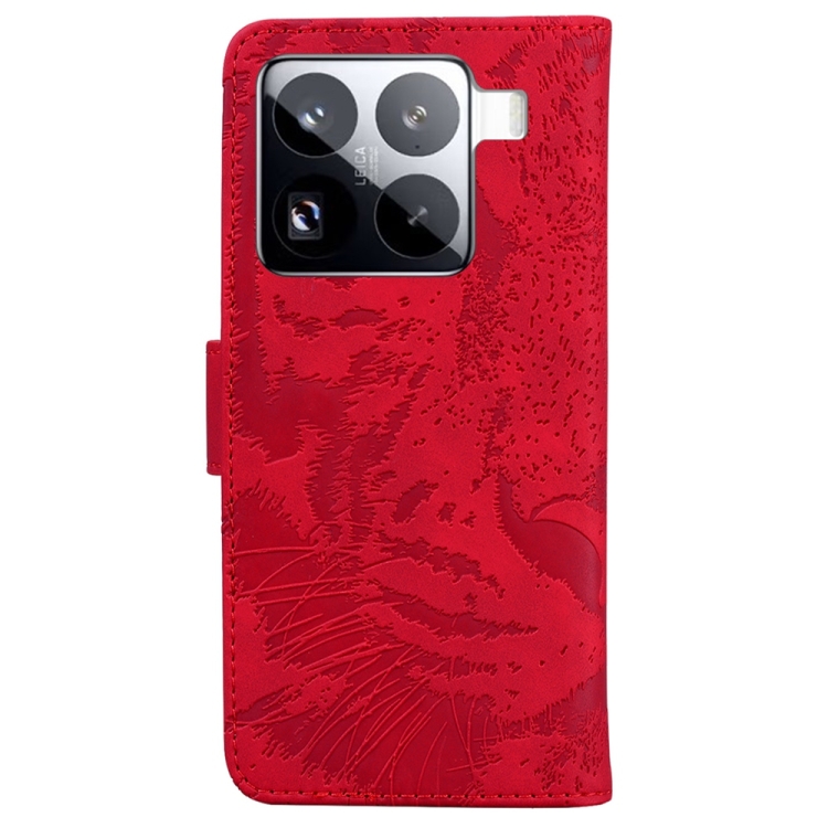 Funda De Cuero Con Tapa Y Estampado De Tigre Para Xiaomi 15 Pro (Roja)