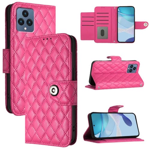 Funda de Cuero para Teléfono T-Mobile Revvl 6/6X 5G con Tapa y Textura Rómbica (Rosa Rojo)