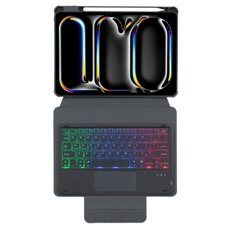 Funda con Teclado Bluetooth Cuero Acrílico para iPad Pro 11 2024 L13-As Control Táctil Retroiluminación (Negro)