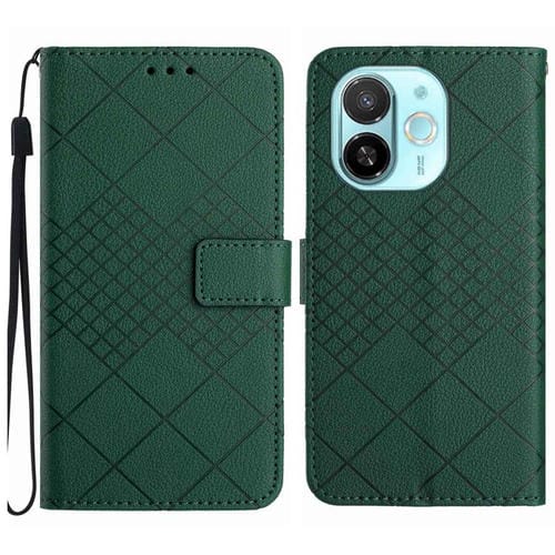 Funda de Cuero para Tecno Spark 30C 5G con Textura de Cuadrícula Rómbica (Verde)