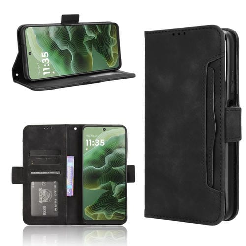 Funda de Piel con Textura de Becerro y Ranuras para Tarjetas para Motorola Moto G35 5G (Negra)