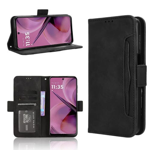 Funda de Piel con Textura de Becerro y Ranuras para Tarjetas Motorola Moto G55 5G (Negra)