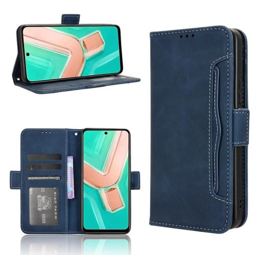 Funda de Piel con Textura de Becerro y Ranuras para Tarjetas para Vivo Y28 4G (Azul)