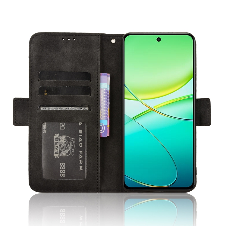 Funda de Piel con Textura de Becerro y Ranuras para Tarjetas para Vivo Y58 5G (Negra)