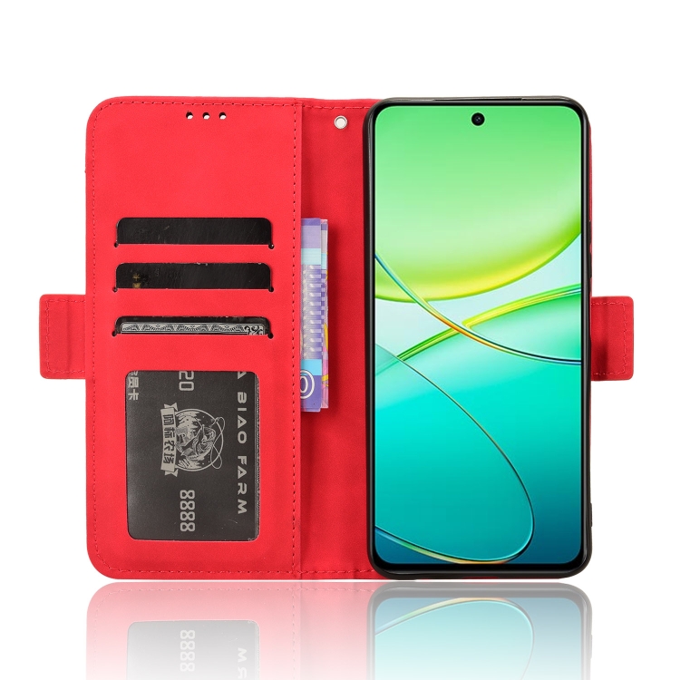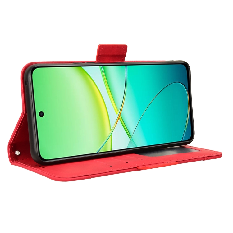 Funda de Piel con Textura de Becerro y Ranuras para Tarjetas para Vivo Y58 5G (Roja)