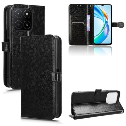 Funda de Cuero para Honor X5B 4G y X5B Plus 4G con Textura de Puntos en Panal (Negra)