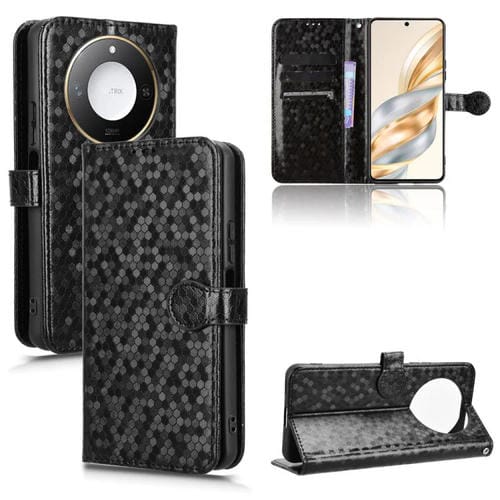 Funda de Cuero con Textura de Puntos en Panal para Honor X9C Smart y X60 5G (Negra)