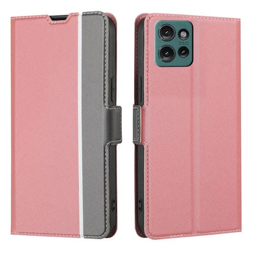 Funda de Cuero con Textura de Sarga y Botones Laterales para Motorola Edge 50 5G (Rosa)