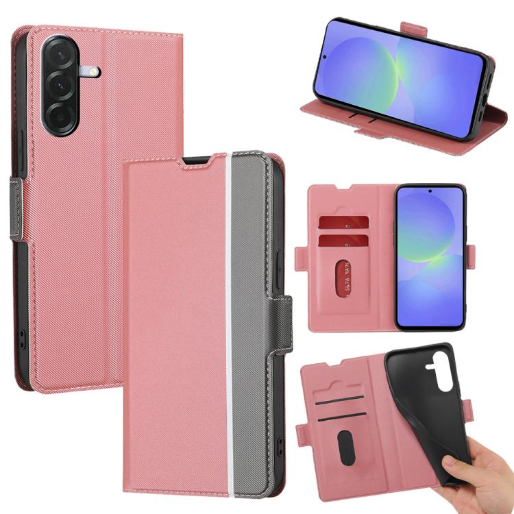 Funda de cuero con textura de sarga y botones laterales para Samsung Galaxy A36 5G (rosa)
