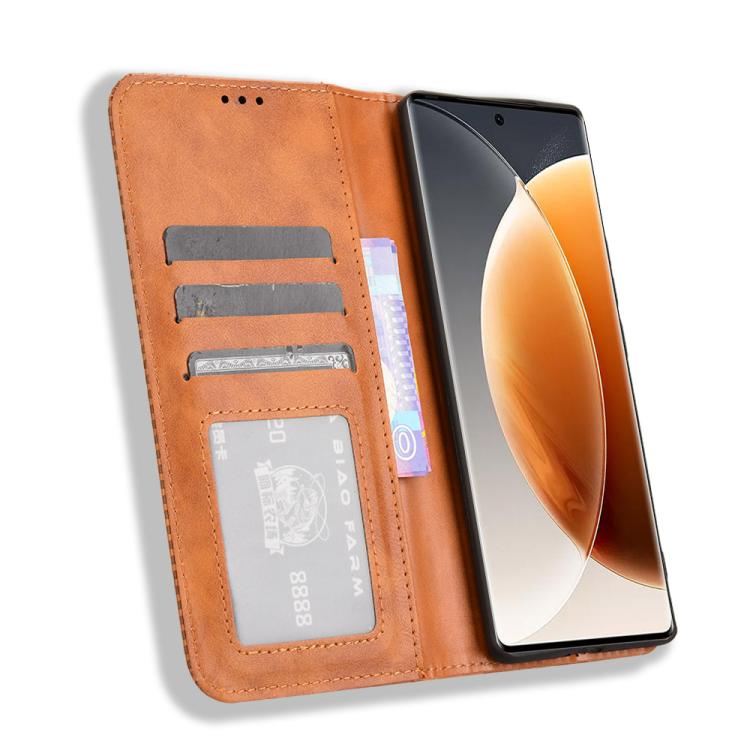 Funda de Cuero Tecno Camon 30S 4G y 30S Pro 4G con Textura Retro y Hebilla Magnética (Marrón)