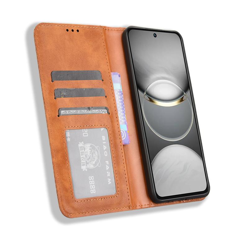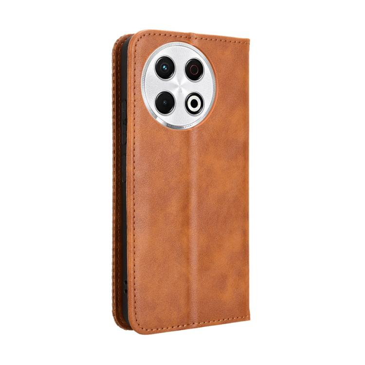 Funda de Cuero para Tecno Spark 30 Pro 4G con Textura Retro y Hebilla Magnética (Marrón)