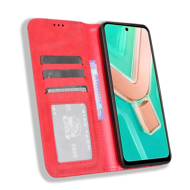 Funda de Cuero con Textura Retro y Hebilla Magnética para Vivo Y28 4G (Rojo)