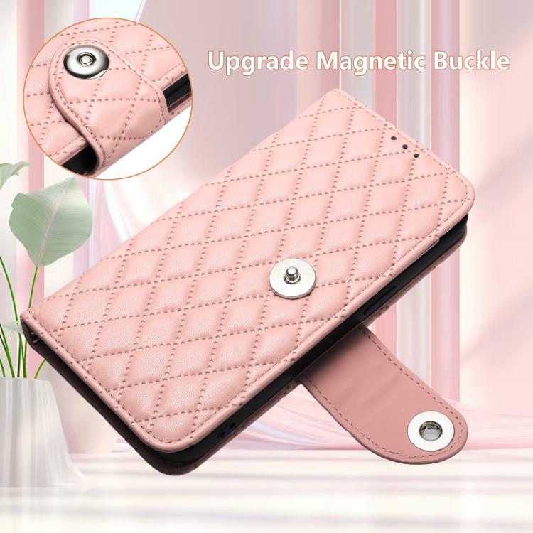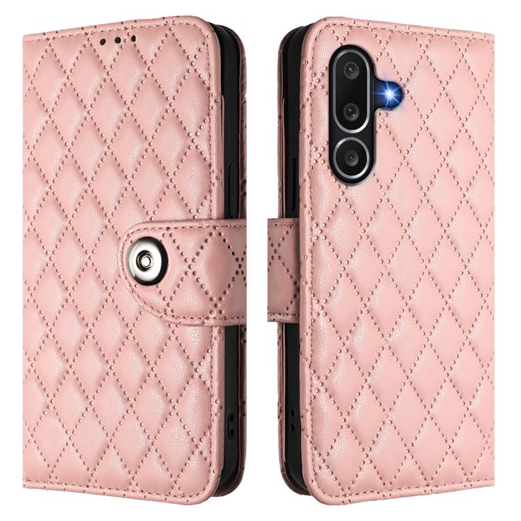 Funda de cuero con textura rómbica y cordón para Samsung Galaxy M56 5G (rosa coral)