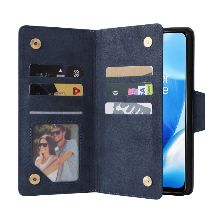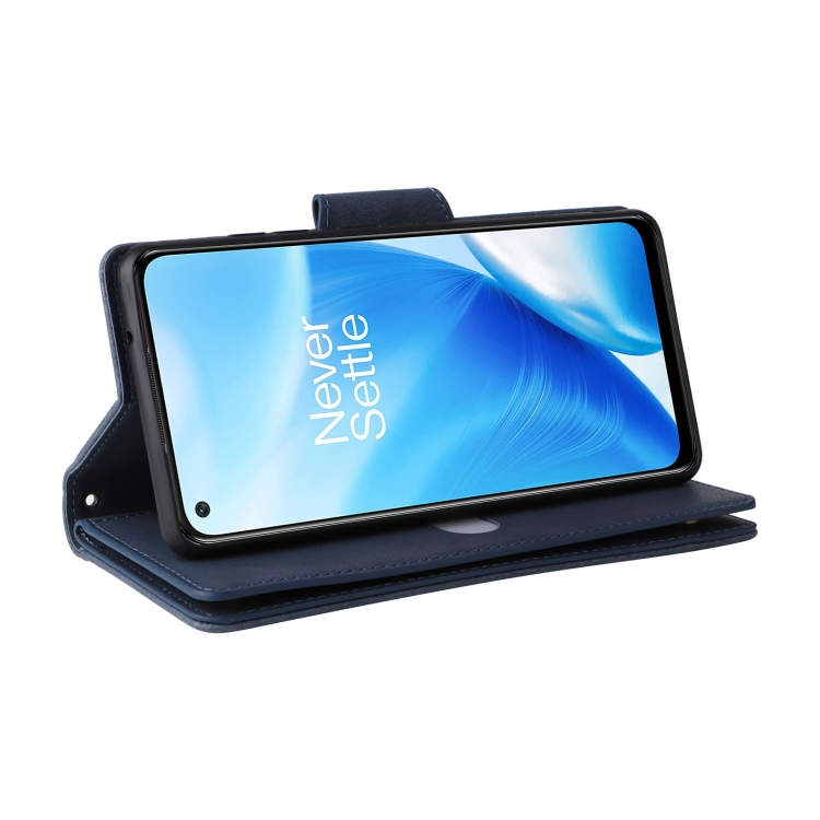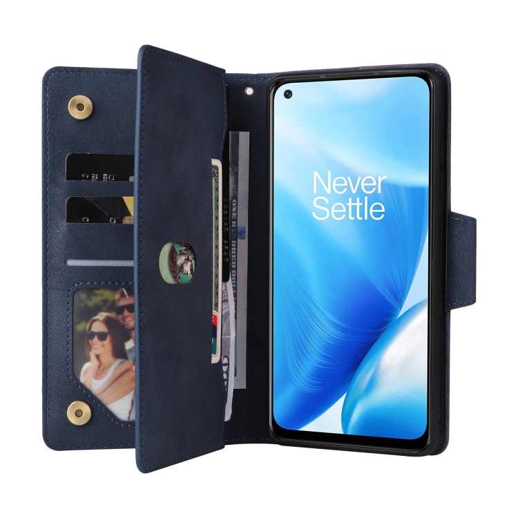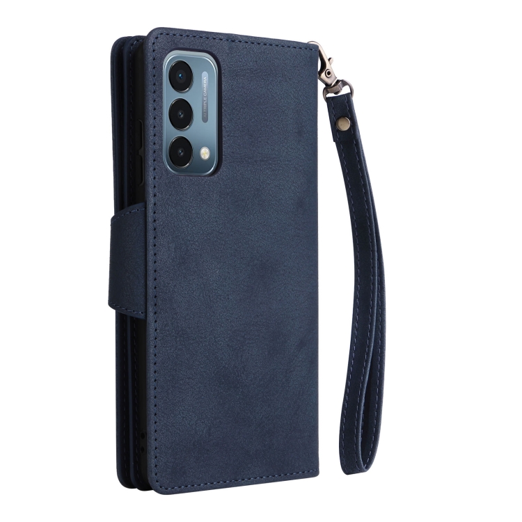 Funda de Cuero con Tres Pliegues y Hebilla para OnePlus Nord 200 5G (Azul)
