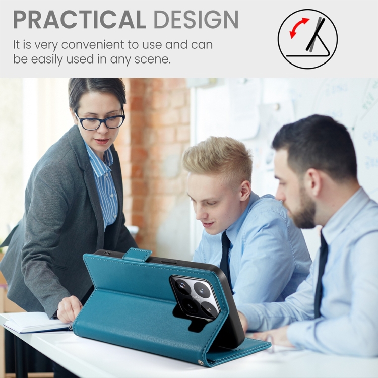Funda De Cuero Esmerilado Con Hebilla Lateral Magnética Para Xiaomi 15 (Azul)