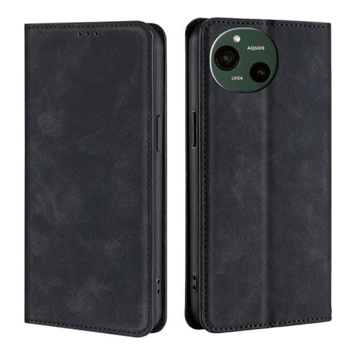 Funda de Cuero Magnética para Sharp Aquos R9 con Tacto de Piel (Negra)