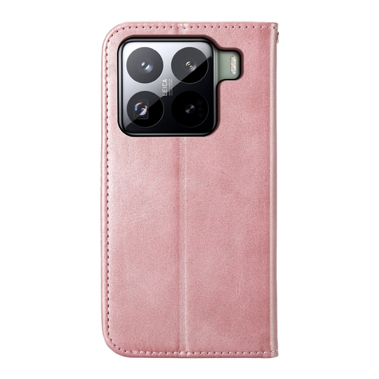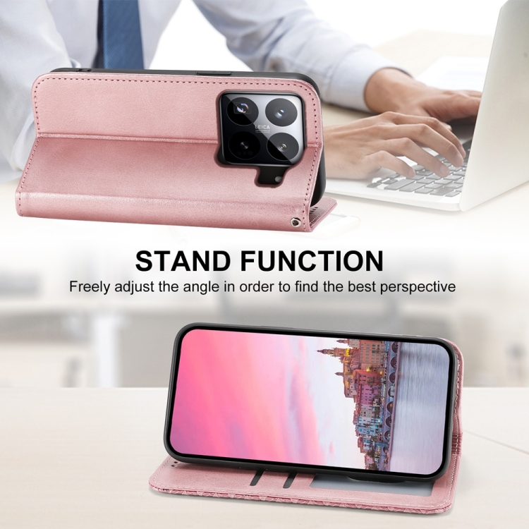 Funda De Cuero Magnética Con Textura De Becerro Y Rejilla Cúbica Para Xiaomi 15 Pro (Oro Rosa)
