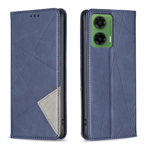 Funda de Cuero Magnética para Motorola Moto G35 con Textura de Rombos (Azul)