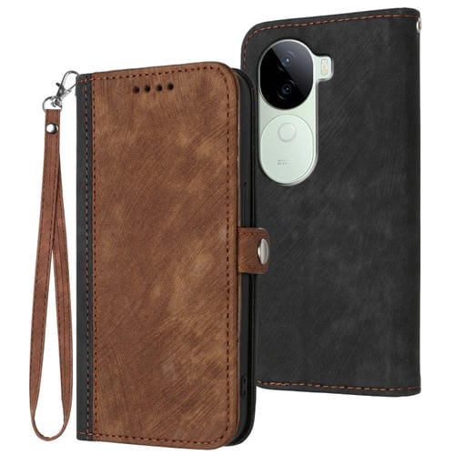 Funda de Cuero para Teléfono con Correa de Mano y Hebilla Lateral Doble Plegable para Vivo Iqoo Z9S/V40E (Marrón)