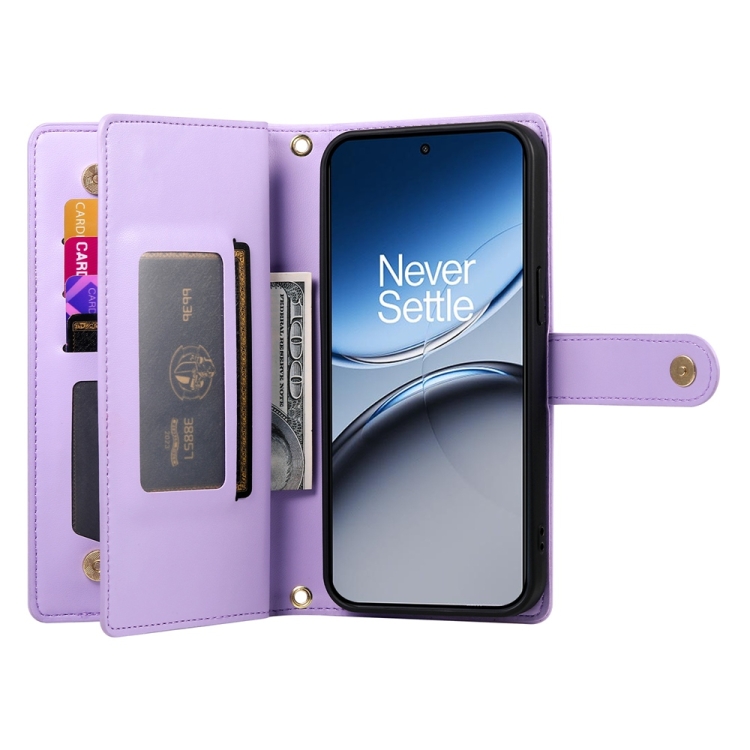 Funda de Cuero para OnePlus Nord 4 5G con 9 Ranuras para Tarjetas y Cremallera (Morado)