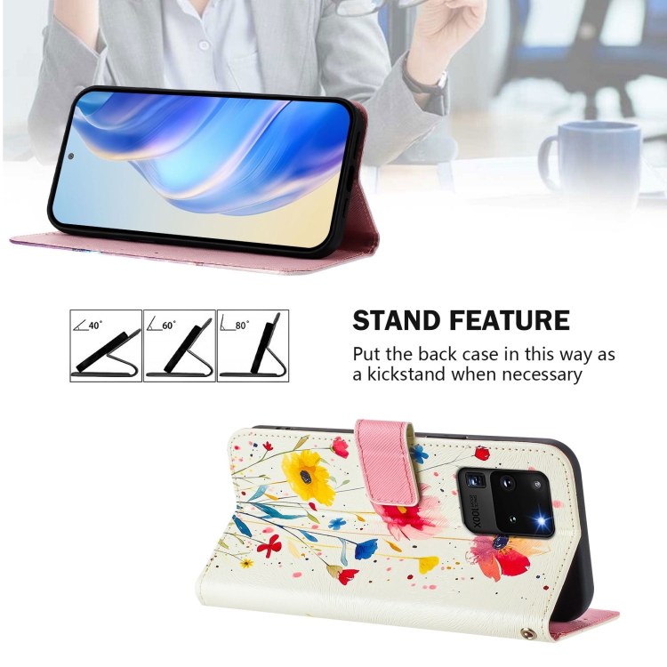Funda de Cuero para Teléfono Samsung Galaxy S20 Ultra con Patrón de Dibujo Artístico Flores y Plantas (Color)