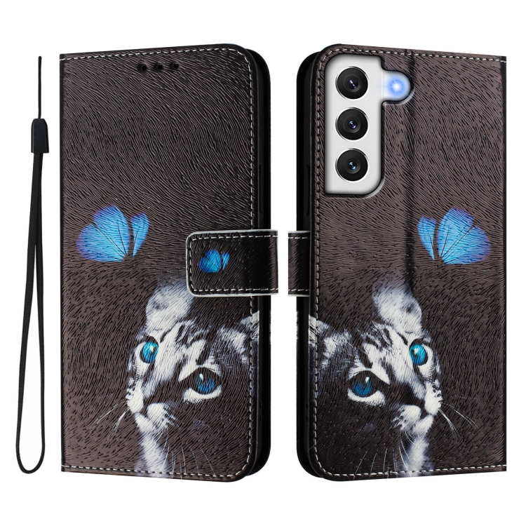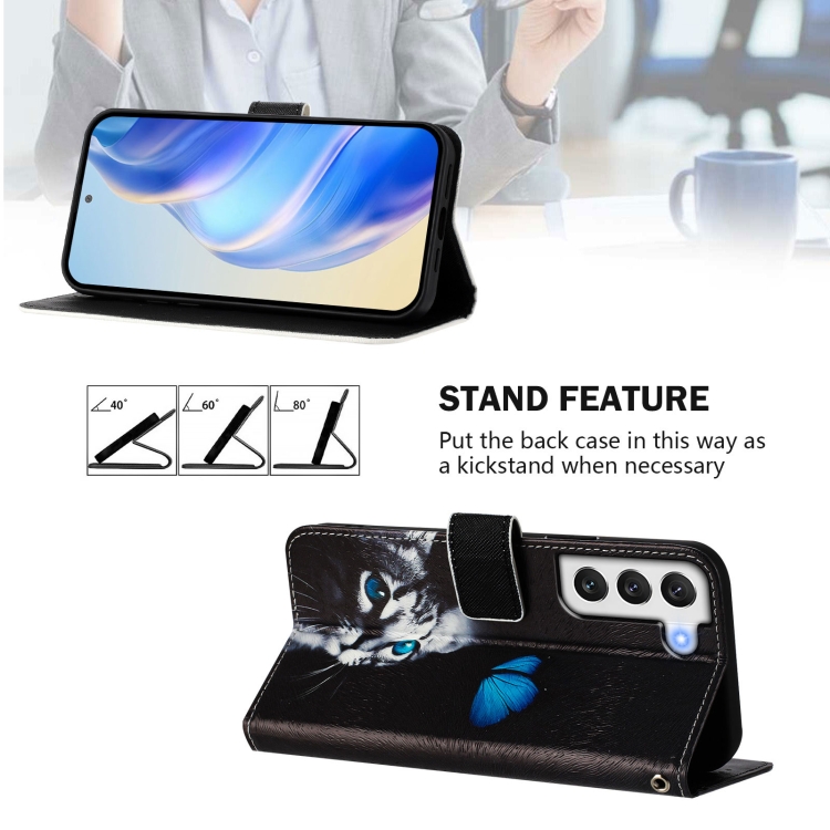 Funda de Cuero Samsung Galaxy S21 FE 5G Patrón Dibujo Artístico (Gato Mariposa)