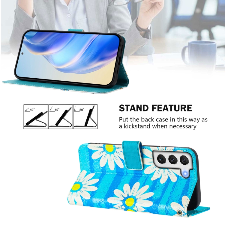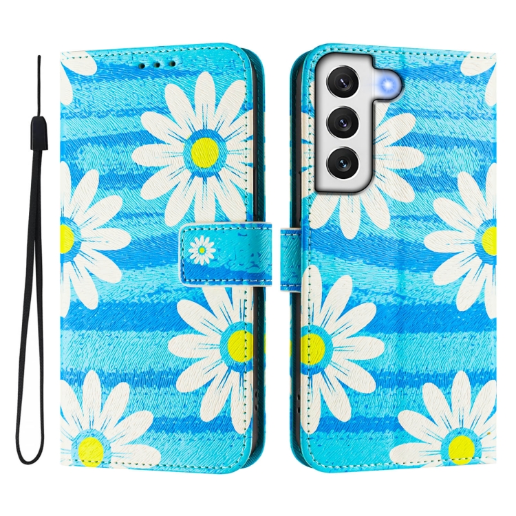 Funda de Cuero para Teléfono Samsung Galaxy S22+ 5G Patrón Dibujo Artístico (Margarita Azul)