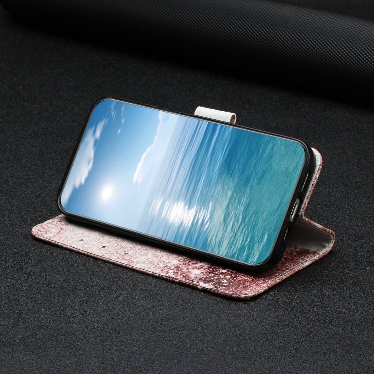 Funda de Cuero para OnePlus 13 con Patrón Mármol y Dibujo de Colores (Oro Rosa)