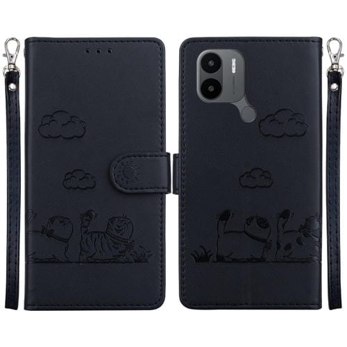 Funda de Cuero Rfid con Diseño de Gatos Lindos para Redmi A1+ 4G Global (Negra)