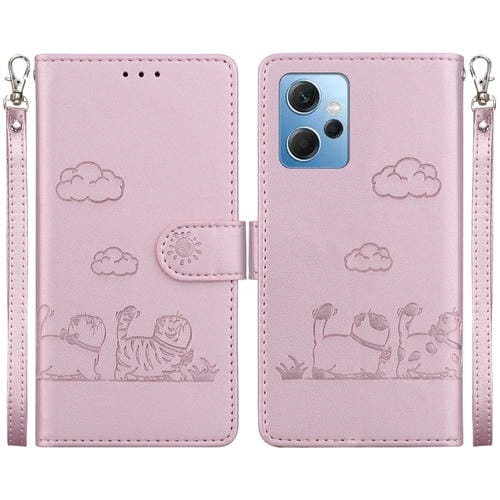 Funda de Cuero Rfid con Diseño de Gatos Lindos para Redmi Note 12 4G (Oro Rosa)