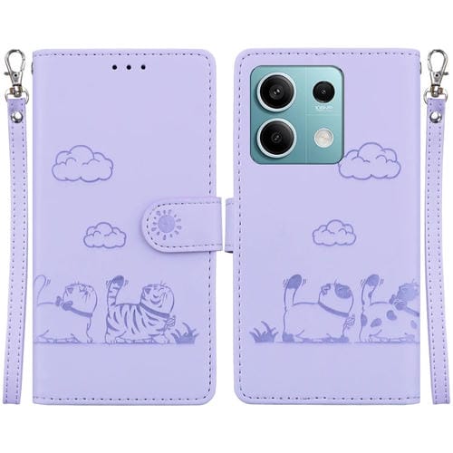 Funda de Cuero Rfid con Diseño de Gatos para Redmi Note 13 5G (Morada)