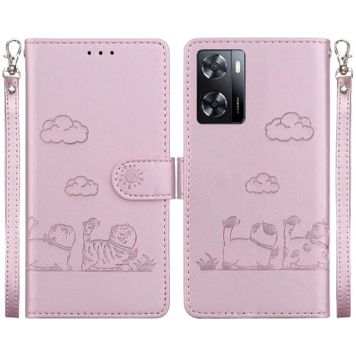 Funda de Cuero Rfid con Diseño de Gatos para Oppo A57 5G / A77 5G (Oro Rosa)