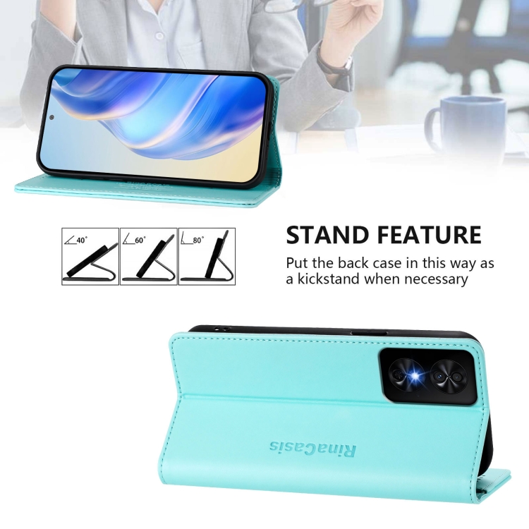 Funda de Cuero Rfid para Teléfono TCL 50 Se Rc01 con Doble Pliegue y Succión Magnética (Verde Menta)