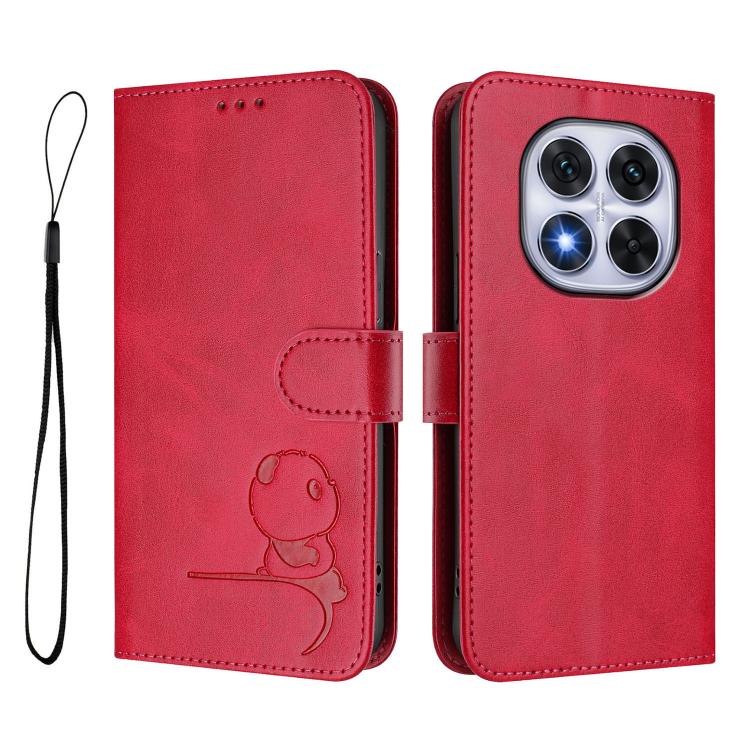 Funda de cuero RFID con estampado de panda y cordón para Redmi Note 14 Pro 5G / 14 Pro+ 5G (rosa)