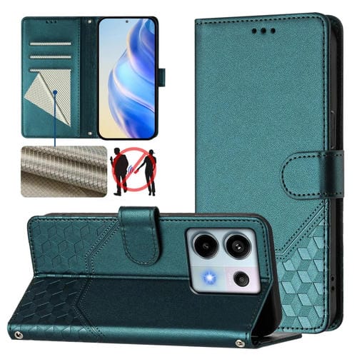 Funda de Cuero Rfid con Relieve de Panal Global para Redmi Note 13 Pro 5G (Verde Pavo Real)