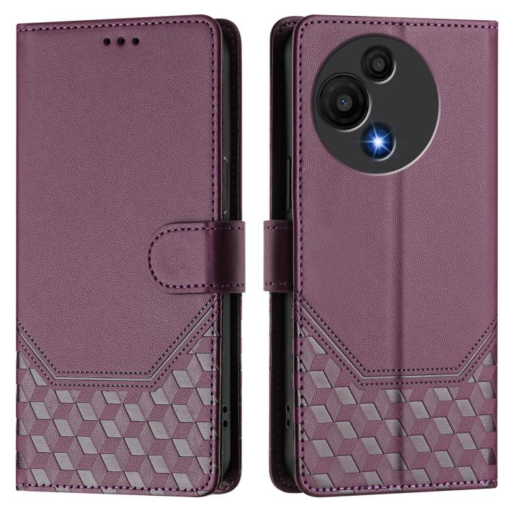 Funda de cuero RFID con relieve de panal para TCL 605/60 SE (violeta)
