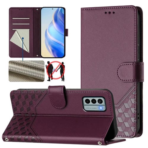 Funda de Cuero Rfid con Relieve en Panal para Nokia G22 (Violeta)
