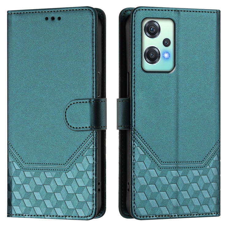 Funda de Cuero Rfid con Relieve en Panal para OnePlus Nord Ce 2 Lite/Nord 2 Lite (Verde Pavo Real)