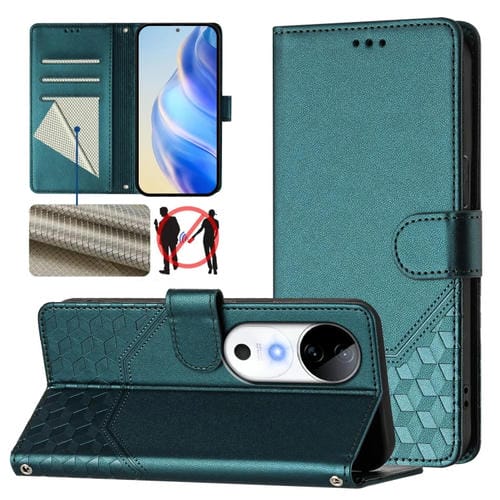Funda de Cuero Rfid con Relieve En Panal para Vivo S19 (Verde Pavo Real)