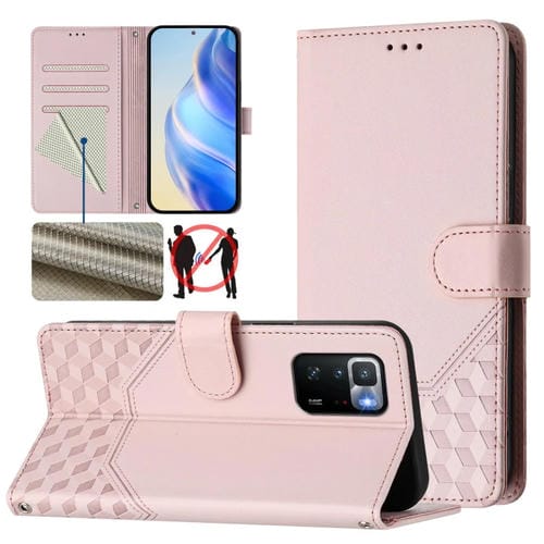 Funda de Cuero Rfid con Relieve En Panal para Xiaomi Poco X3 Gt (Rosa)